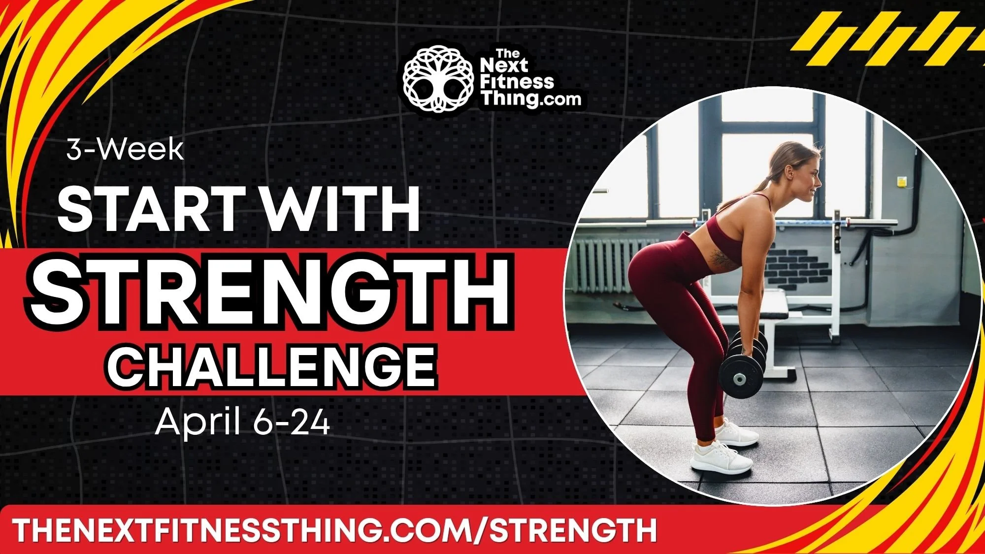 Start With Strength is a 3-week challenge centered on consistent, measurable strength training. You’ll track reps, sets, and weights and focus on steady progress.